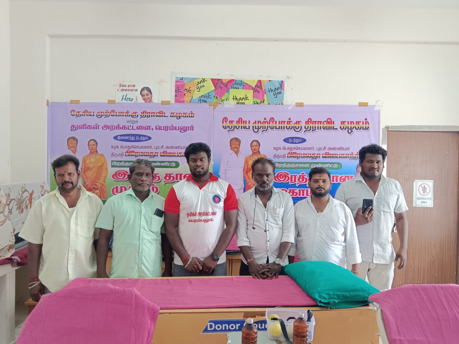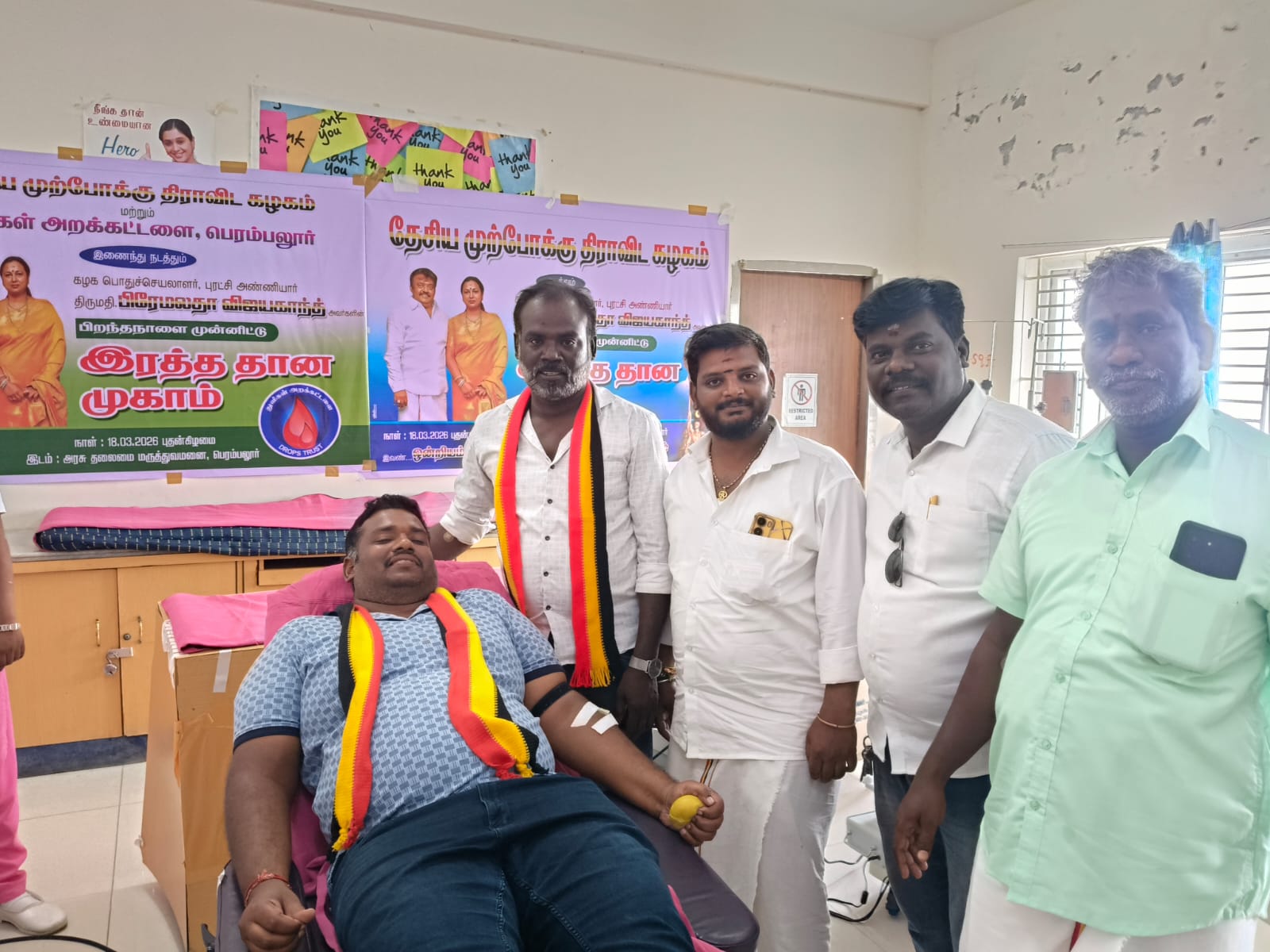 18-03-2026 அன்று திருமதி.பிரேமலதா விஜயகாந்த் அவர்களின் பிறந்தநாள் முன்னிடு துளிகள் அறக்கட்டடளை மற்றும் தேசிய முற்போக்கு திராவிட கழகம் இணைந்து இரத்த தானம் முகாம் பெரம்பலூர் அரசு தலைமை மருத்துவமனையில் நடத்தப்பட்டது. இதில் சுமார் 20 நபர்கள் தங்களின் இரத்தத்தை இரத்த தானம் செய்தனர்.
